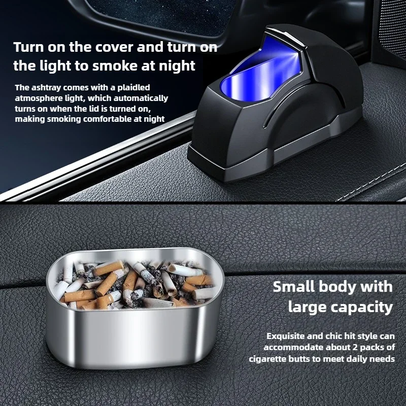 Hign-concerned Chemical: None Special Features: Multifunction,Blu-ray Brand Name: dawndesslo Origin: Mainland China Premium Windproof Car Door Ashtray – Sleek Design with Metal Lining, Seamless Integration for Perfect Ash Control Unique Style Black With Light : Button battery, easily replaceable