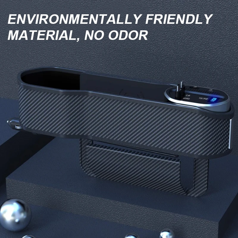 【With Charging Function】: Multifunctional seat gap storage box has a charging function, super fast charging, has a digital display function, and the digital display shows the voltage of the car battery.